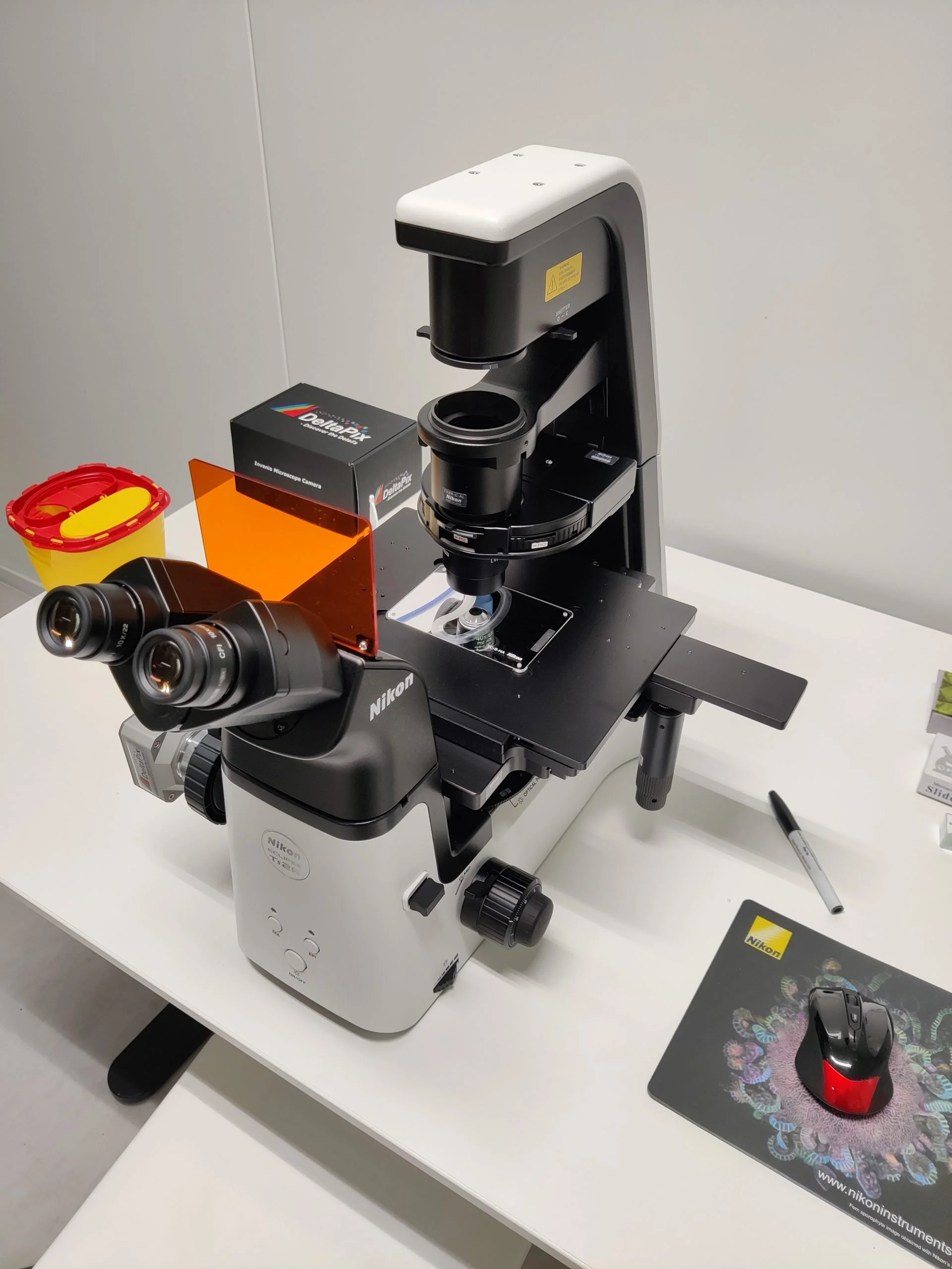 Mikroskopet kan brukes til forskning og utvikling. Og er utstyrt for å kunne se på mikroalger og helt ned til en størrelsesorden på 0,5 µm. Mikroskopet har utstyr for å kunne skille levende og døde celler, og for å sjekke om organismer fluoriserer (som er som er viktig for å se om du har å gjøre med en cyanobakterie å gjøre). Det kan brukes til å lage en måling av kulturer, sjekke opp hvordan utviklingen av levende fôr går. Kanskje du trenger noen ekstra gode bilder til et prosjekt, en søknad eller promoteringsmaterialet?