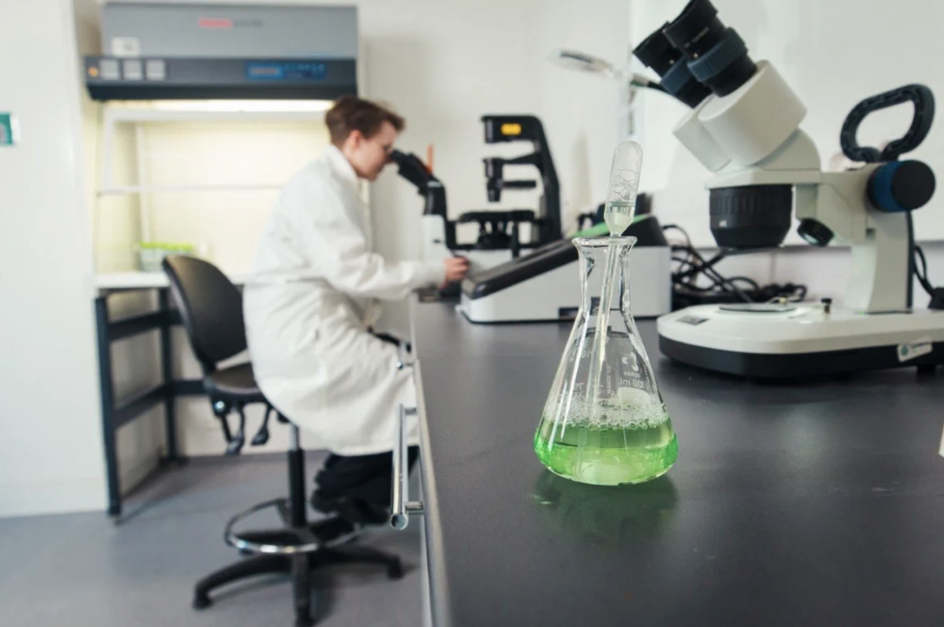 Labben er utstyrt med avtrekksskap for trygg håndtering av kjemikalier og et låsbart giftskap for sikker lagring av farlige stoffer.